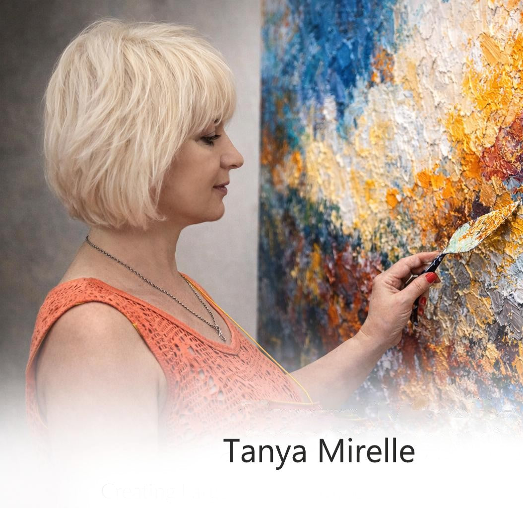 Tanya Mirelle creates large-scale textured abstract originals designed to elevate modern interiors.