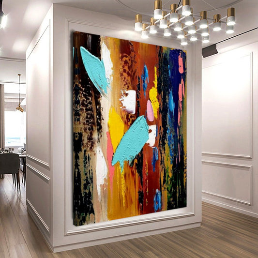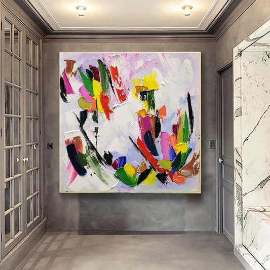 Modern Abstract Impasto Oil Painting on Canvas, Colorful Textured Wall Art for Living room