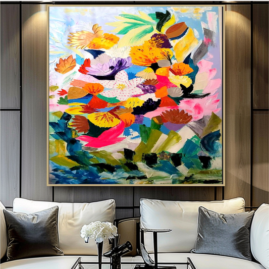 Floral Symphony - Modern Abstract Impasto Oil Painting on Canvas, Colorful Textured Wall Art