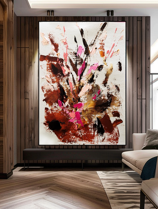 Blossoms in Bloom - Abstract Impasto Oil Painting on Canvas, Modern Abstract Floral Art for Living room, Bedroom