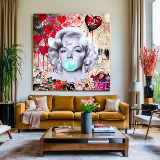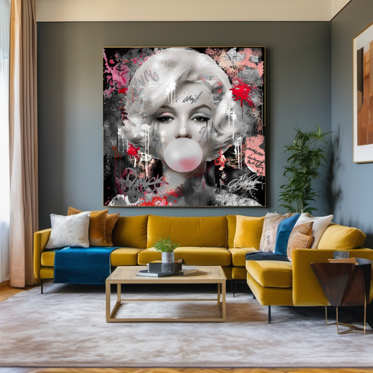 Graffiti Marilyn Monroe blowing Bubble Gum, Modern Pop Art Print on Canvas