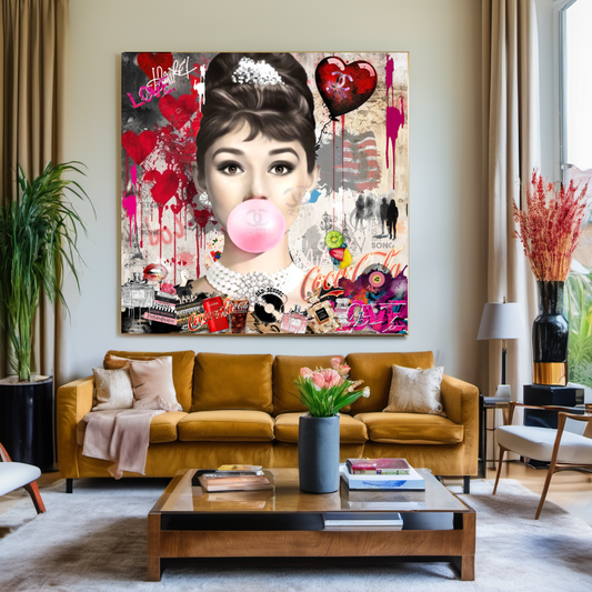 Audrey Hepburn Bubble gum Pop Art - Large Canvas Print - Retro Hollywood Print