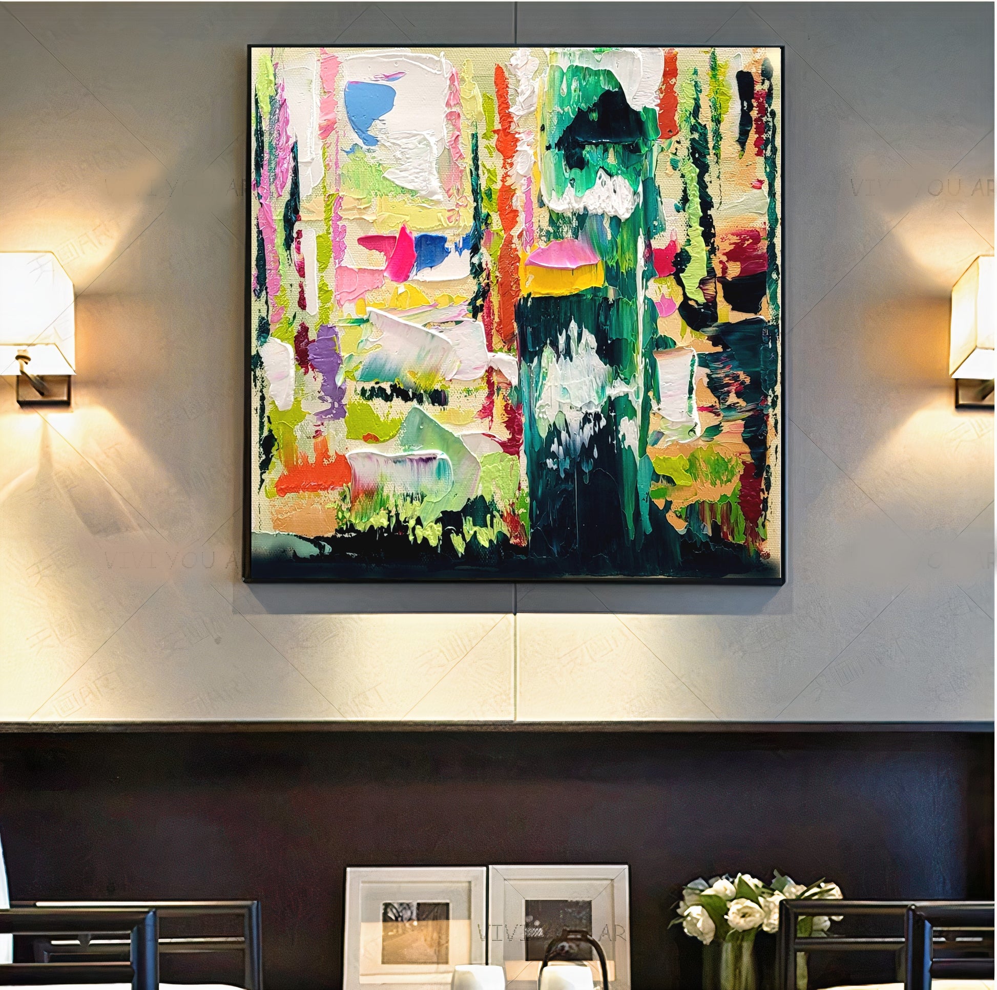 - Enhance your living space with this vibrant modern abstract impasto oil painting on canvas.