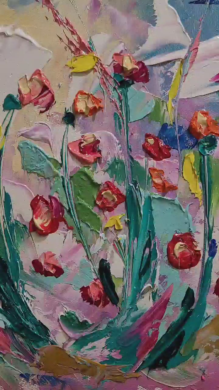 - Discover the vibrant world of impasto oil paintings, where floral and abstract designs come to life in a burst of color and energy.