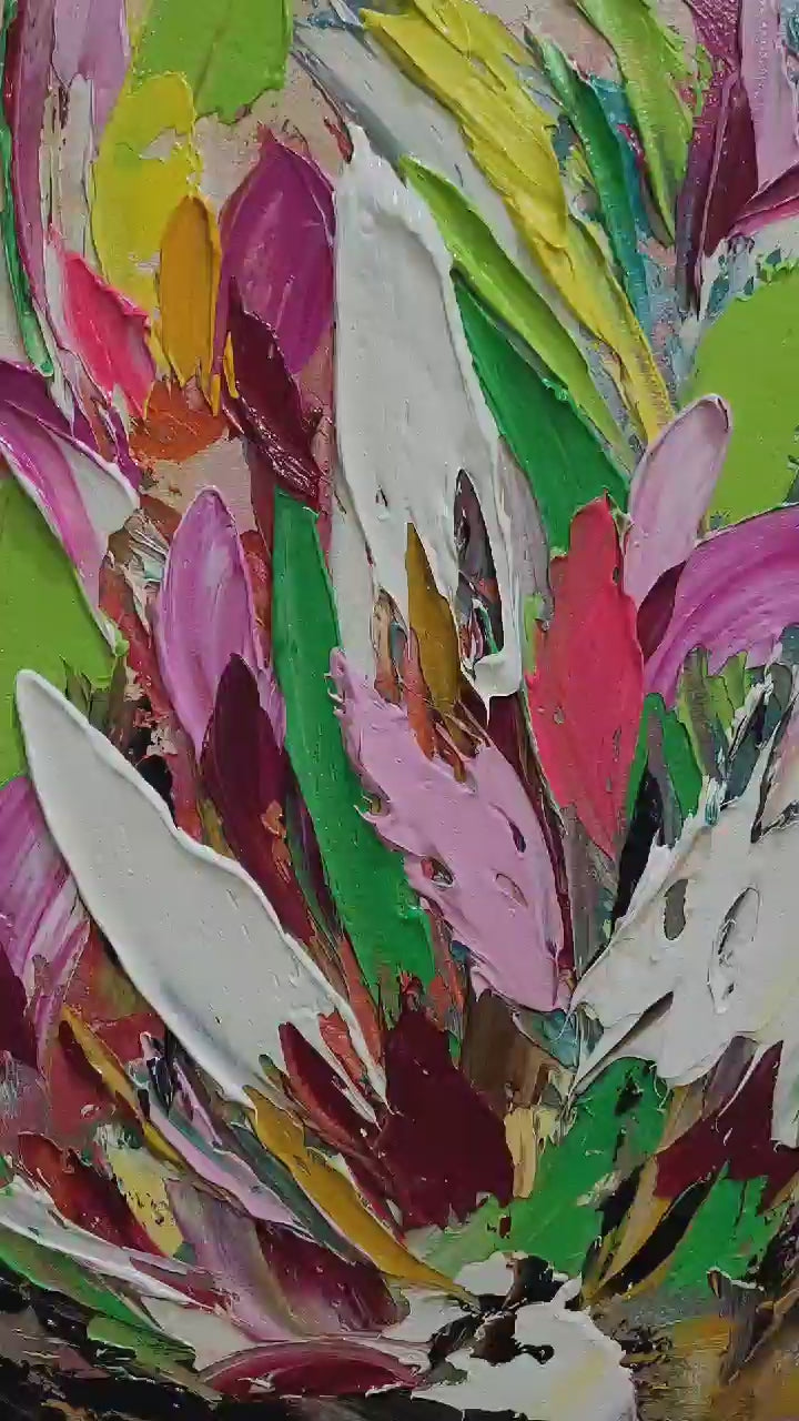 - Discover the vibrant world of impasto oil paintings, where floral and abstract designs come to life in a burst of color and energy.