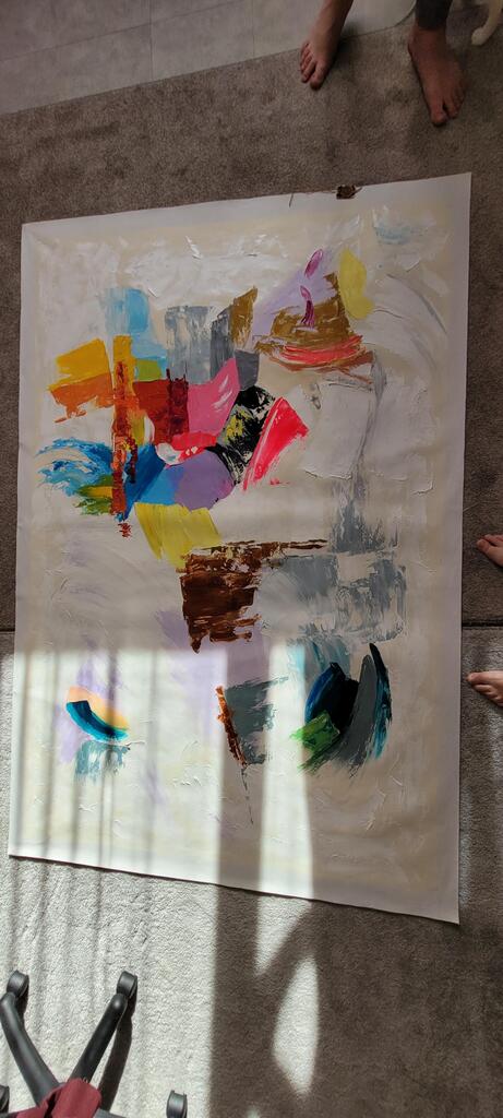 ''The painting reached us in excellent condition. It was well packaged and well protected for shipping. It meets our expectations with a good quality canvas and an abstract representation that highlights the play of colors chosen. Kudos to the artist!''