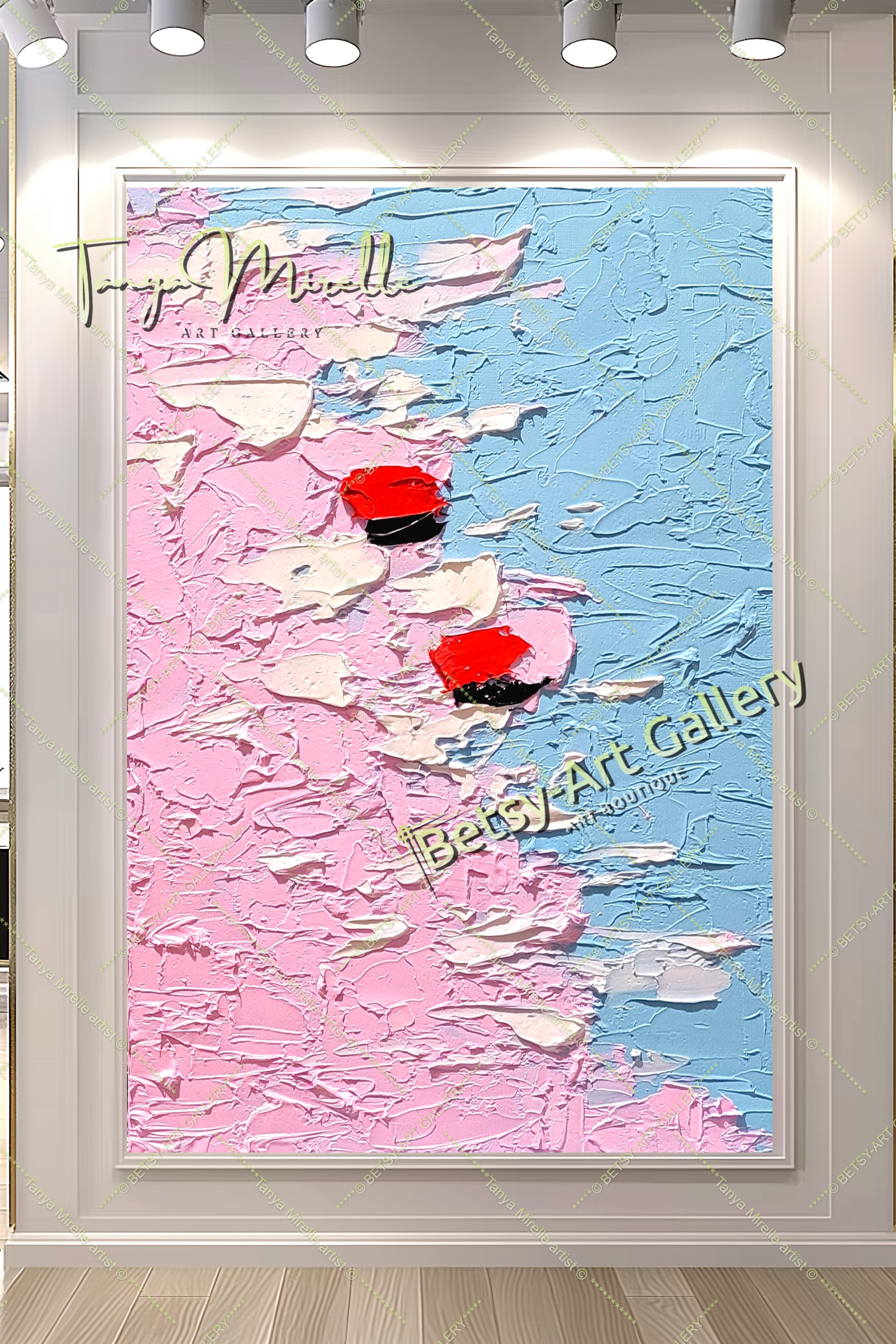 Découvrez la beauté sereine des tons pastel avec « Pastel Breeze », une superbe peinture à l'huile sur toile en impasto. Cette œuvre d'art présente un jeu délicat de fonds rose et bleu doux, accentué par des éléments floraux rouges audacieux qui ajoutent une touche de couleur. Les coups de pinceau épais et texturés créent une surface tactile, faisant presque bondir les fleurs hors de la toile, offrant une expérience visuelle dynamique. Parfaite pour ajouter une touche d'élégance moderne à n'importe quelle pièce, cette peinture florale abstraite est un magnifique mélange de couleurs et de textures, incarnant l'énergie apaisante mais vibrante de la nature.