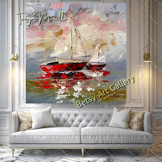 Abstract Sailboat Impasto Oil Painting on Canvas #172