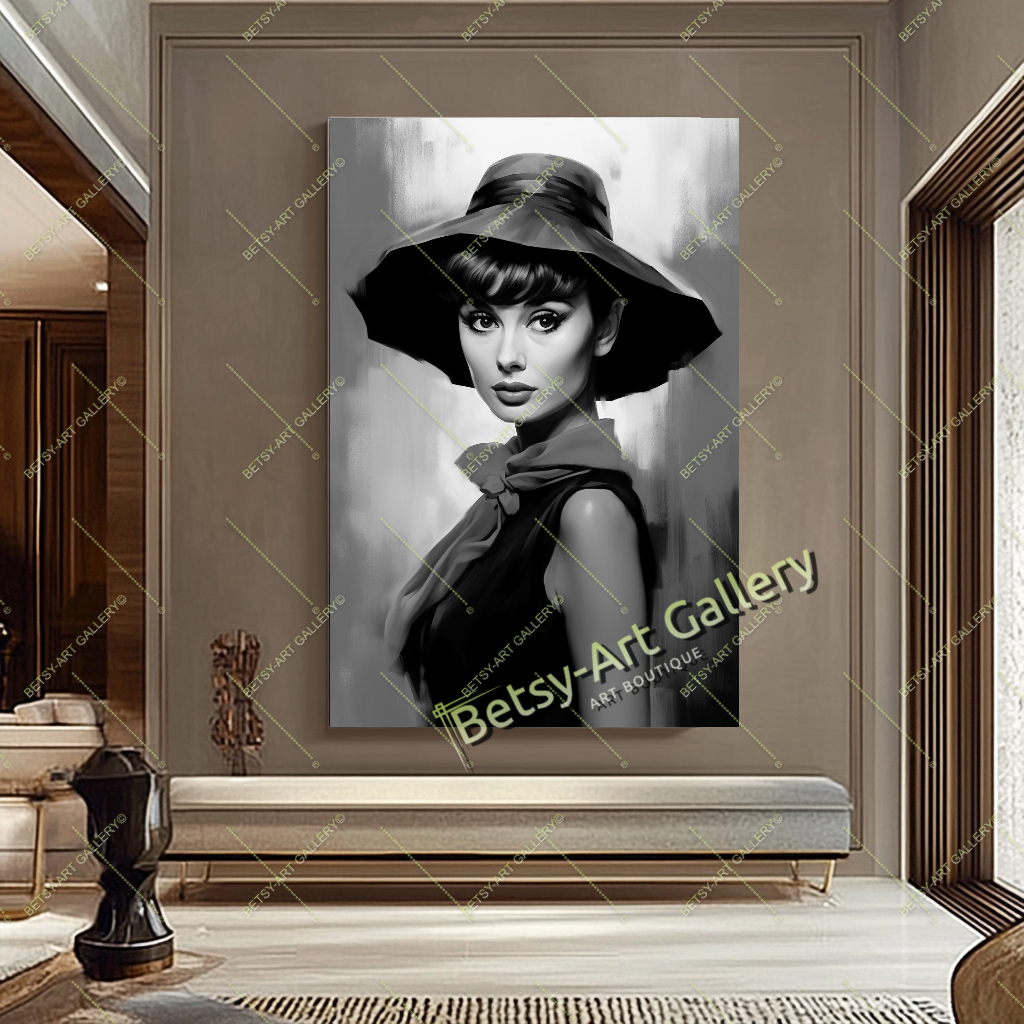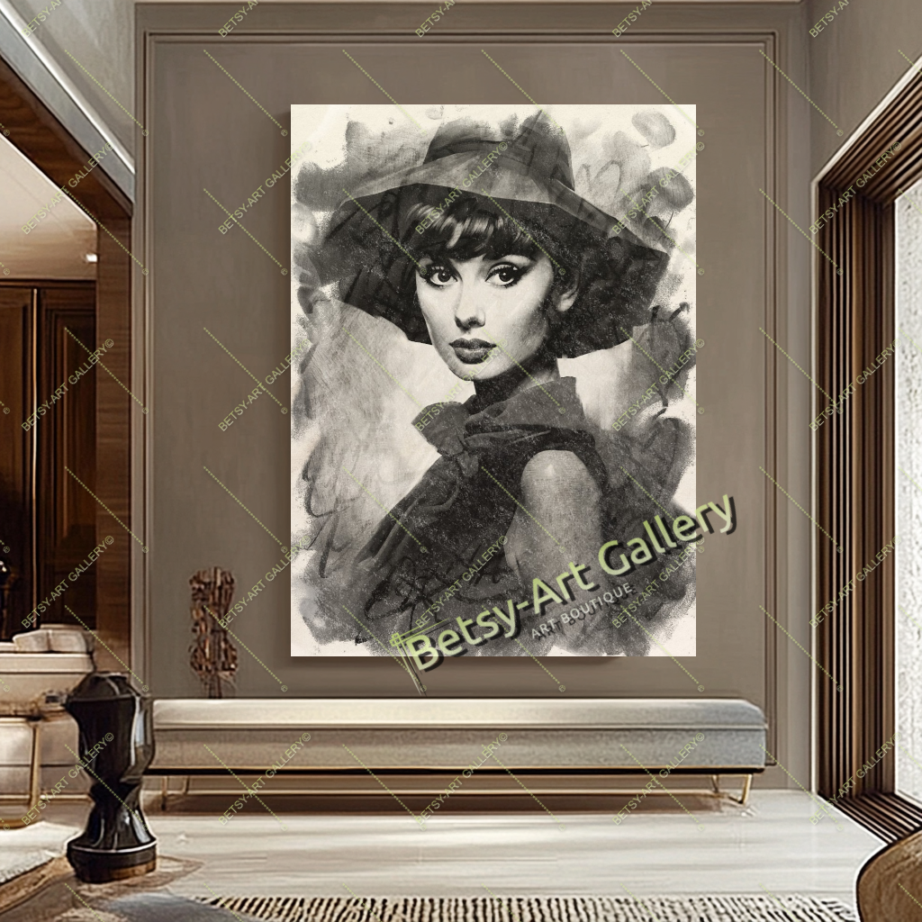 - This vibrant and chic canvas print features a pop art depiction of the timeless Black White Audrey Hepburn - Modern Iconic Pop Art Canvas Print, blending classic Hollywood glamour with modern graffiti elements.