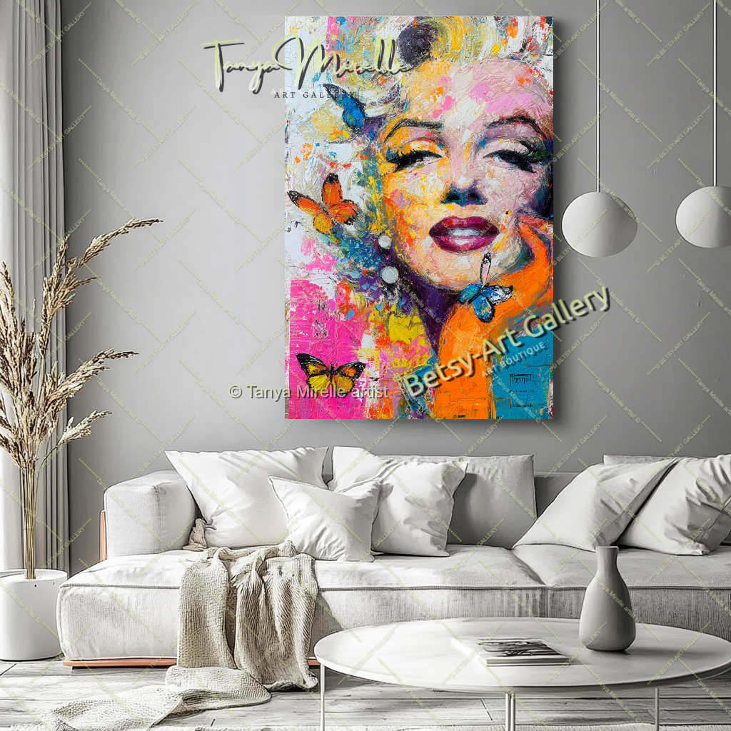 - This vibrant and chic canvas print features a pop art depiction of the timeless Charmant Oriental Marilyn Monroe Portrait - Vibrant Modern Canvas Print #4, blending classic Hollywood glamour with modern graffiti elements.