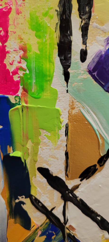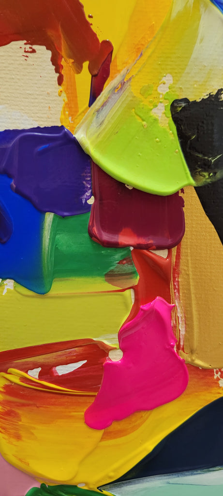Vibrant colors and bold brushstrokes come together in a dance of spontaneity and creativity. Each painting is a unique expression of mood, energy, and imagination, created by applying thick layers of oil paint that give the artwork a sculptural quality. The impasto technique allows the artist to play with light and shadow, creating dynamic surfaces that invite you to explore the nuances of each piece from different angles.